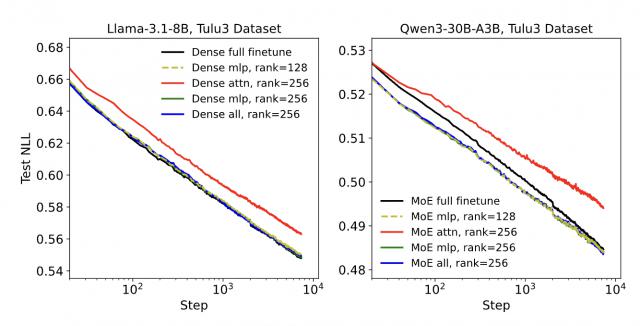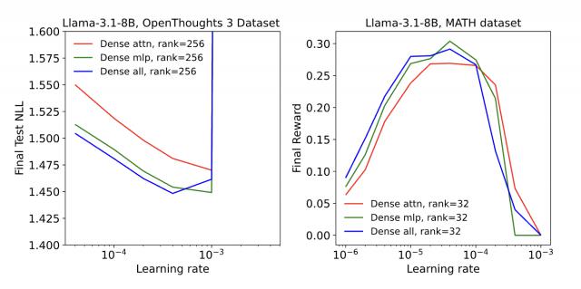 过去不少研究习惯将 LoRA 仅应用于注意力矩阵,但此次实验结果却打破了这一固有思路。