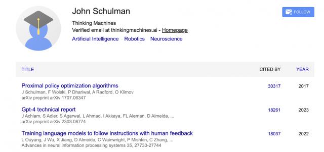 Google Scholar 页面显示,John Schulman 的学术引用将近 14 万。