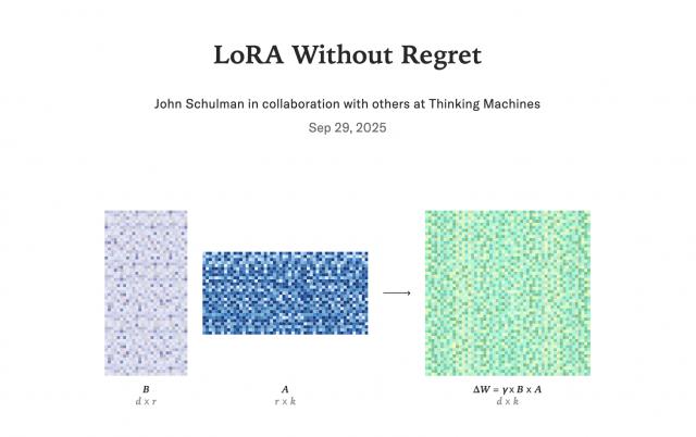 John Schulman 和 Thingking Machines 团队给出了肯定答案:只要抓准关键细节,LoRA 不仅能和 FullFT 拥有相同的样本效率,还能达到一样的最终性能。