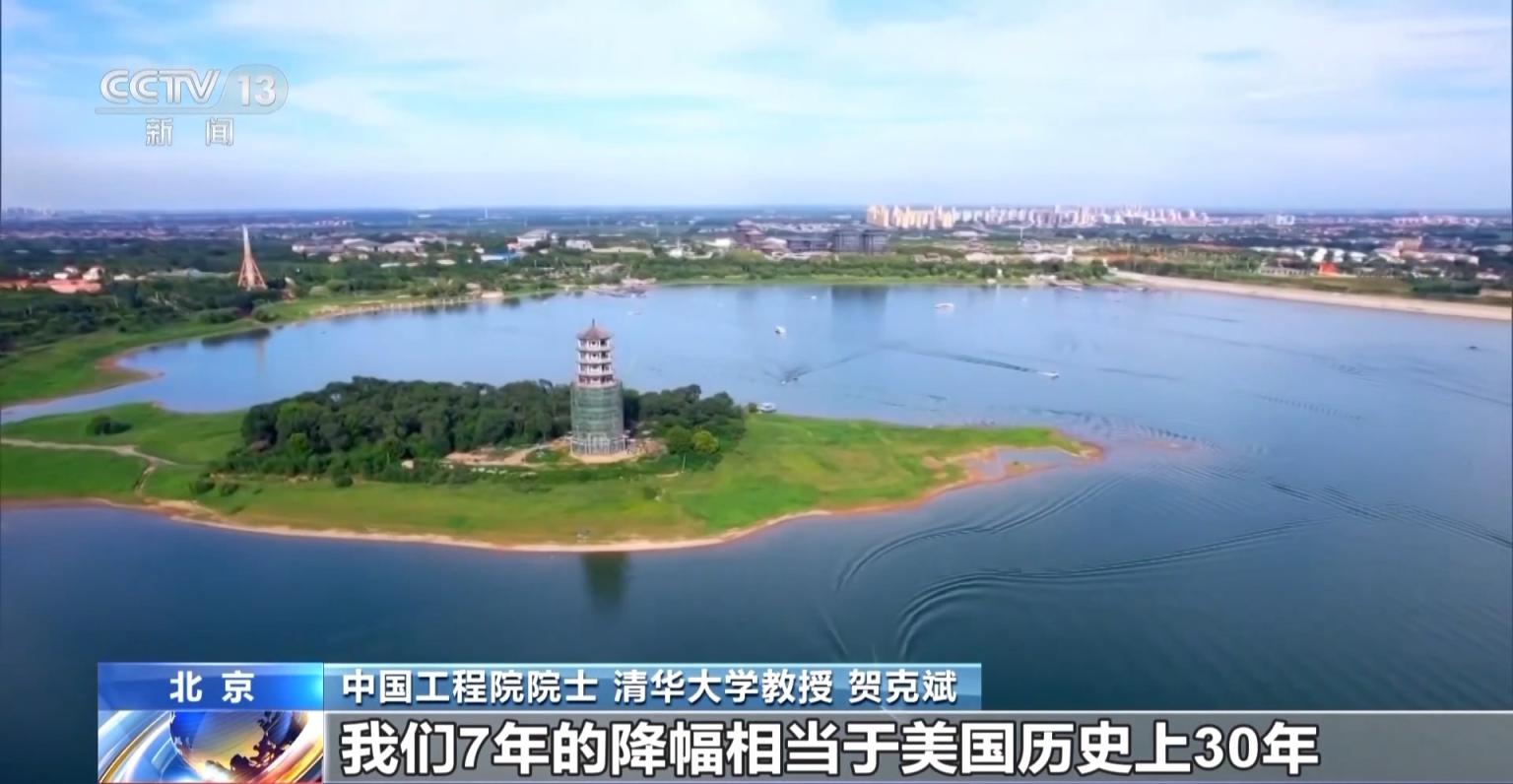中国工程院院士 清华大学教授 贺克斌:我们用的改善时间是非常短的,美国马里兰大学的一个研究机构专门对比了一下中美的情况,用的PM2.5浓度的降幅,在同样一个降幅下,我们7年的降幅相当于美国历史上30年,所以这是一个举世瞩目的成绩。