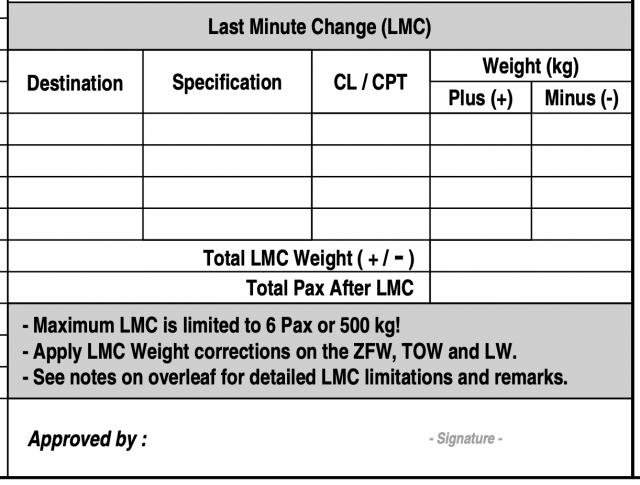 比如,下图就是某航空公司舱单上的"最后一分钟修正"表格。最后一分钟修正能调整的值跟最大无燃油重量,最大起飞重量,最大着陆重量有关。